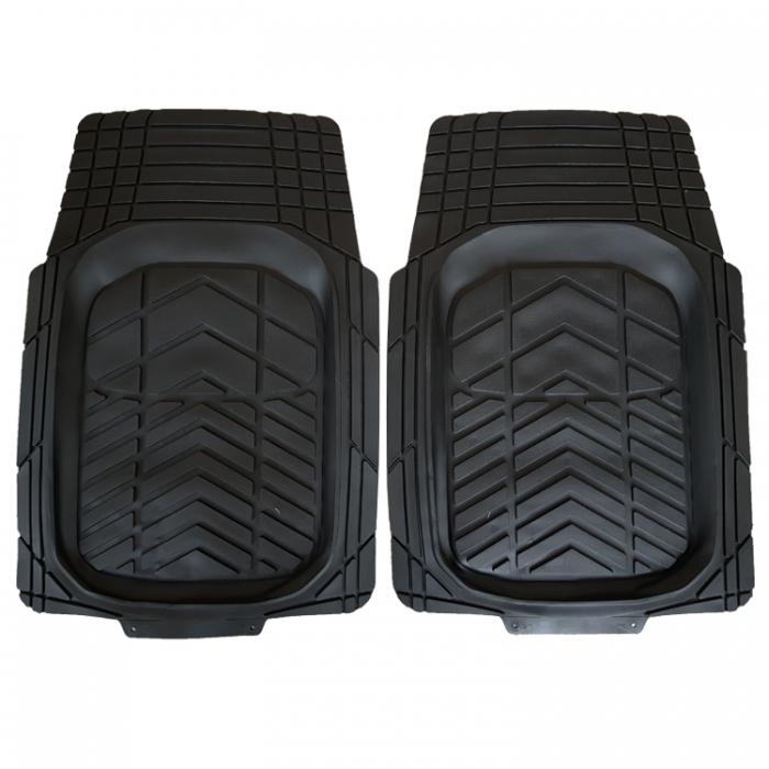 Търсените гумени стелки са универсални, изработени от висококачествени материали, което гарантира дълъг експлоатационен живот. Те предлагат възможност за изрязване, за да осигурят по-добро пасване във вашето превозно средство. Комплектът включва 2 предни стелки, които се отличават с антиплъзгащи свойства, осигуряващи комфортно и приятно пътуване.
