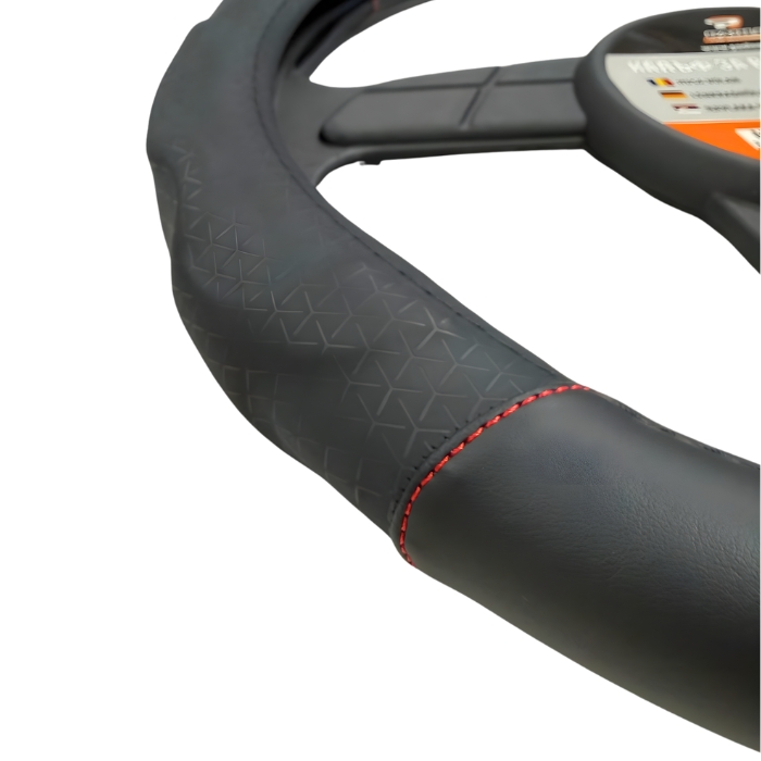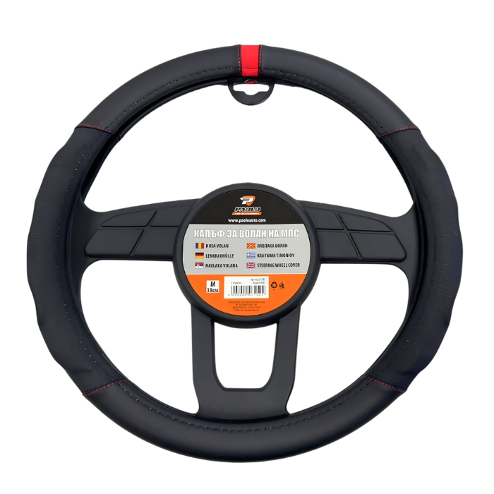 Подходящ за стандартни автомобилни волани с диаметър 38 см, този модел е чудесен избор за водачи, които търсят съчетание от удобство, защита и спортна визия.