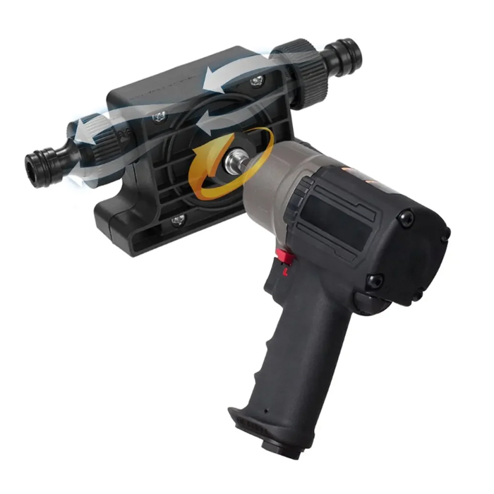 Компактна и удобна водна помпа, проектирана за задвижване с обикновена електрическа бормашина. Перфектно решение за битови и хоби приложения като поливане, изпразване на съдове, прехвърляне на течности и други.