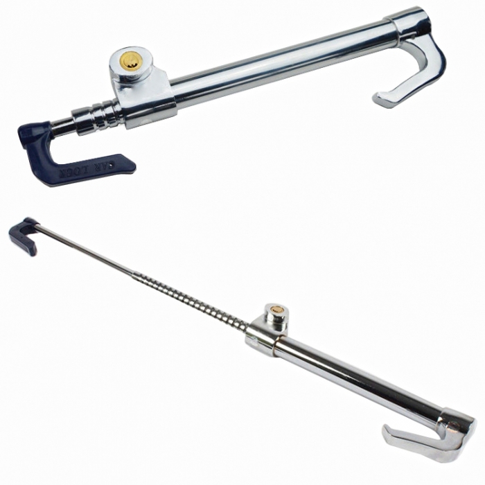 Универсалният бастун за волан е мощен инструмент за защита срещу кражба на автомобил. Той е проектиран да захване както волана, така и педала, осигурявайки двойна защита на превозното средство. Регулируемата дръжка позволява на потребителя да настрои бастуна според нуждите си.
