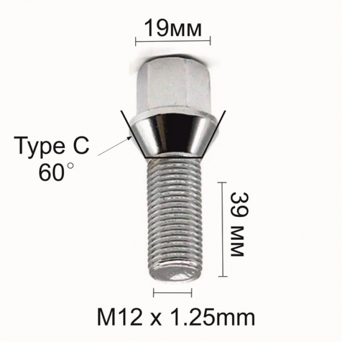 Болт за джанти тип конус (12мм x1.25мм х39мм)