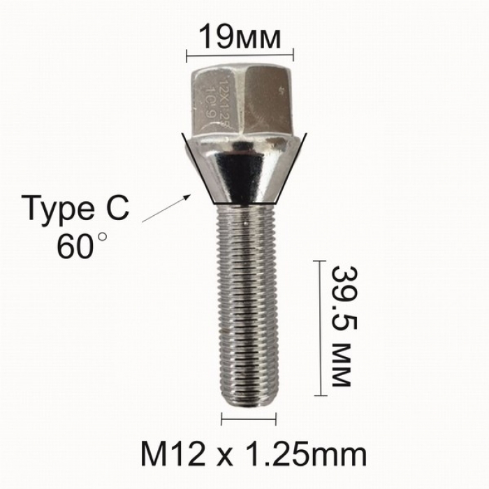 Болт за джанти тип конус (12мм x1.25мм x39.5мм)