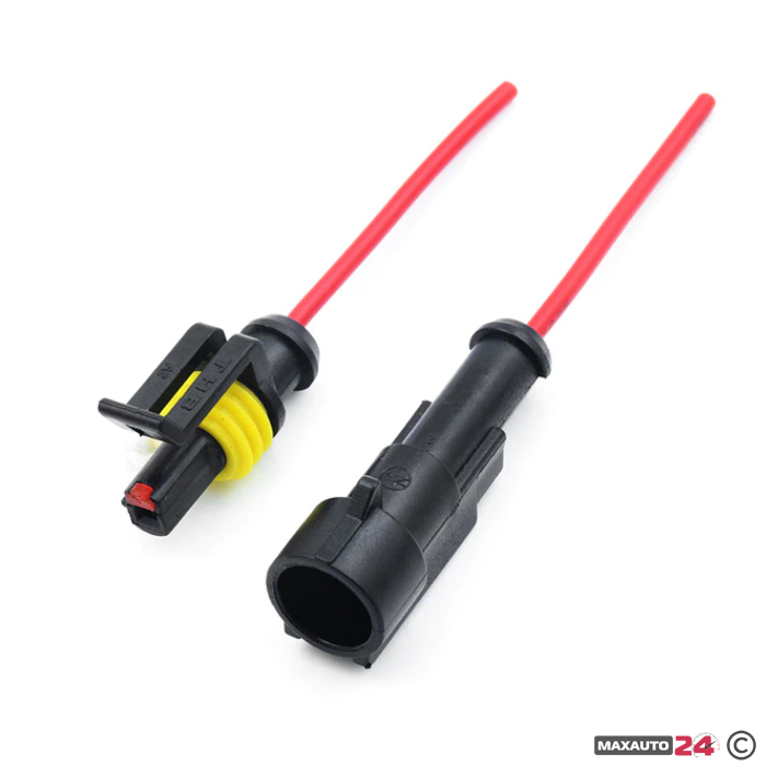 Този артикул е комплект от мъжка и женска букса с 1 пин, предназначени за свързване на електрически устройства. Дължината на кабела е 35 см, а буксите са водоустойчиви. Цената е за един комплект, който включва и двете букси – мъжка и женска.