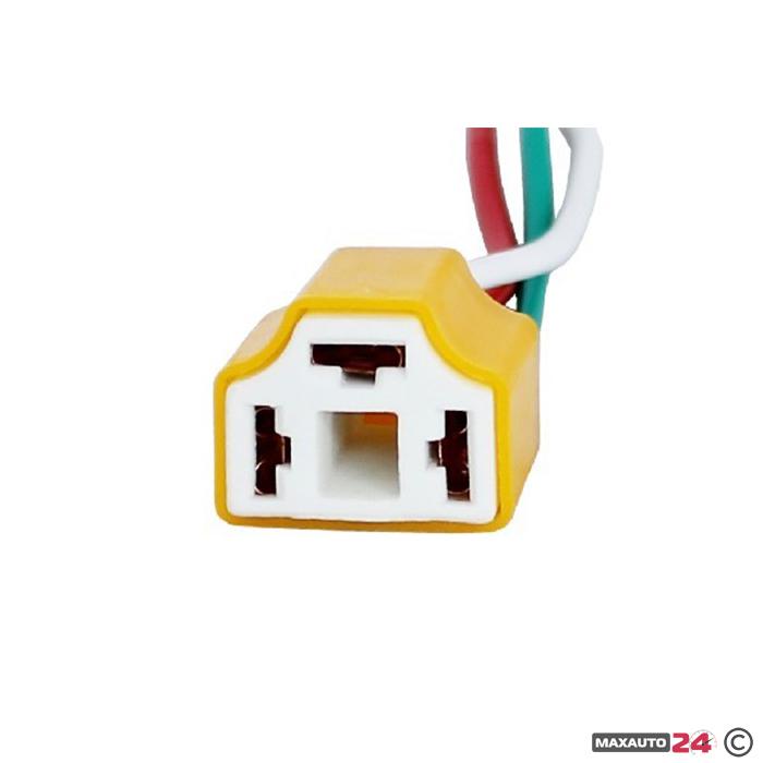 Описанието е за букса за крушка H4, която е подходяща за използване както при напрежение от 12V, така и от 24V. Буксата е изработена от керамика и PVC материали. Цената е за един брой букса, а те се предлагат в пакет от 20 броя. Тази букса се използва за свързване на крушка H4 към автомобилната електрическа система.