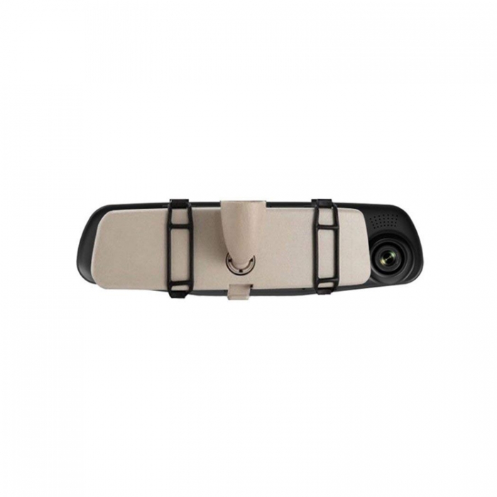 Комплектът включва видеорегистратор в огледало с монитор, камера за задно виждане с диоди, зарядно за автомобил, USB кабел, скоби за закрепване и винтове.