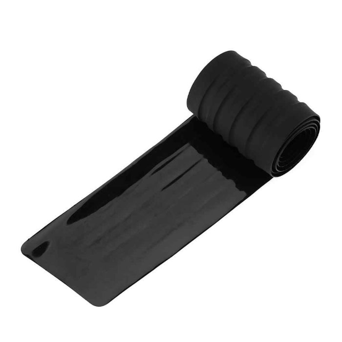 Защитната гумена лайсна за задната броня предпазва от нараняване на задната част на автомобила при товарене и разтоварване на багаж. Гуменият протектор е изработен от гума, която осигурява добра защита. При нужда от по-малка дължина, лесно можете да я намалите спрямо вашите нужди. Размерите на лайсната са дължина 90 см и ширина 7.5 см. Този размер е подходящ за различни автомобили и предлага достатъчно покритие и защита на задната броня.