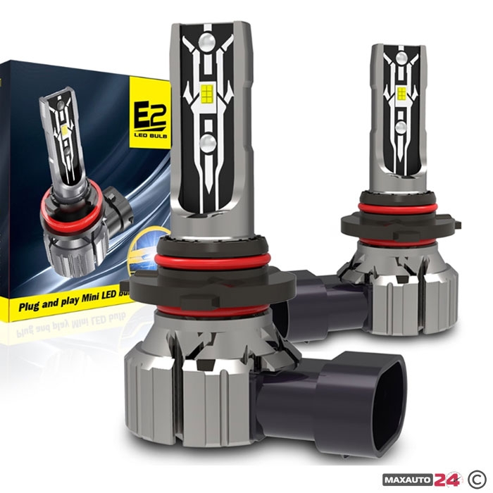 Комплектът от диодни крушки Е2 за фарове със стандарт 9005 е напреднало решение за по-ярко и равномерно осветление на пътя. Ето някои от характеристиките на този комплект: