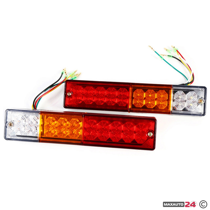 Висококачествен комплект от два LED стопа, подходящи за широка гама превозни средства и ремаркета, работещи на 12V. Осигуряват силна видимост и повишена безопасност при движение, благодарение на ярките и надеждни светодиоди.