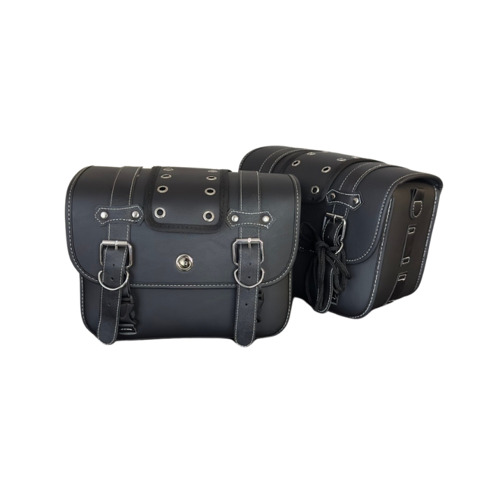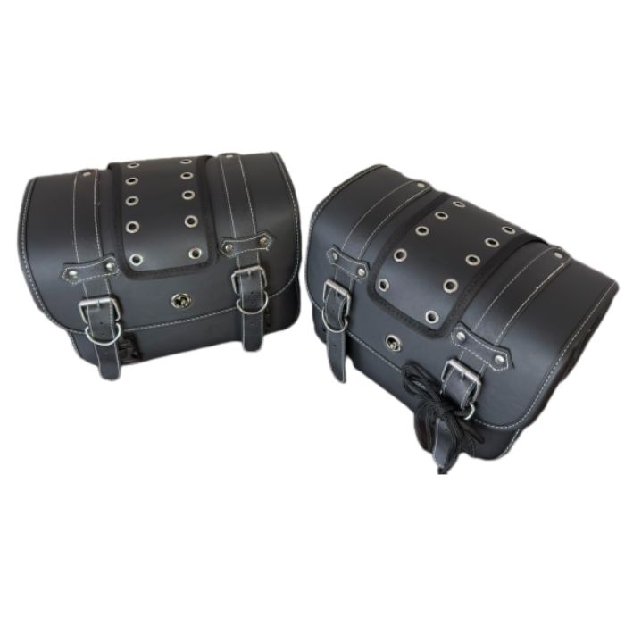 Тези мото дисаги (модел: PA882) са здрави, стилни и практични, изработени от висококачествена еко кожа с декоративни метални елементи. Те са универсални и подходящи за различни модели мотори, като осигуряват удобно съхранение на багаж.