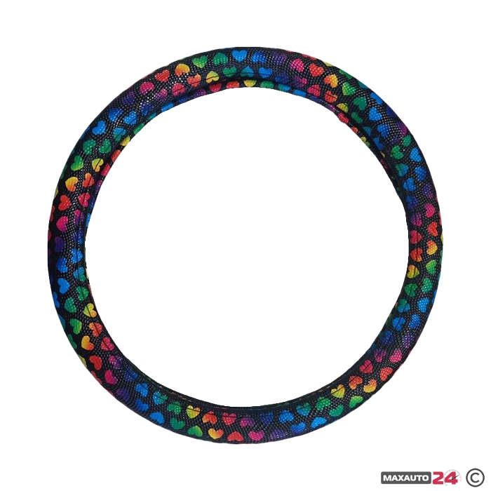 Този калъф за волан разполага с антиплъзгащ дизайн, осигуряващ стабилност и сигурност по време на шофиране. Подходящ е за широк спектър от модели автомобили и предпазва волана от износване, като му осигурява допълнителна защита. Освен това, калъфът не само предлага комфорт, но и добавя естетика на вашия автомобил, като го разкрасява. С размер М – 38см и цвят черен на сърца, той е стилен акцент, който допълнително украсява интериора на вашия автомобил.
