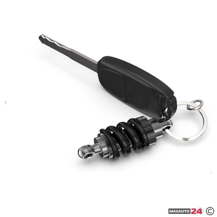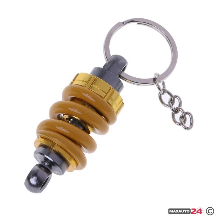 Този ключодържател е във формата на амортисьор и е наличен в четири различни цвята: червен, черен, лилав и жълт. Той е изработен с прецизност от метал.