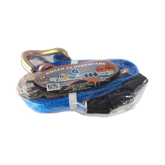 Този колан предлага здраво и сигурно закрепване на колата на ремаркето на автовози, като полиестерният материал осигурява надеждна издръжливост. Товароносимостта от 3 тона е подходяща за повечето средно големи автомобили.