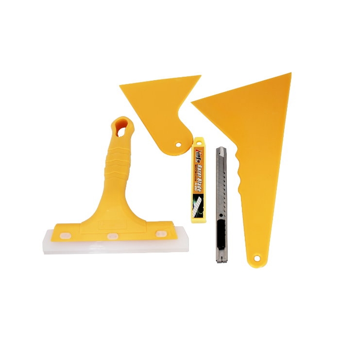 Този комплект включва различни размери шпатули и макетни ножчета, които са предназначени да направят поставянето на фолио по-лесно и по-прецизно. Шпатулите са полезни за изглаждане на фолиото, отстраняване на въздушни мехурчета и придаване на гладък завършек. Макетните ножчета пък ви позволяват да режете фолиото до желаните размери и форми, като осигуряват прецизност и контрол. Този комплект е идеален за професионално поставяне на фолио в различни приложения, като защита на автомобилни или домашни прозорци, странични огледала и други.