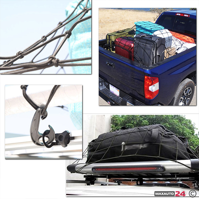 Представяме ви удобна мрежа за транспорт на багаж, която е перфектното решение за организация и сигурност на вашите вещи по време на пътуване. Тази мрежа е лесна за монтиране, благодарение на 12-те адаптора и куки за захващане, които осигуряват здраво закрепване във вашето превозно средство.