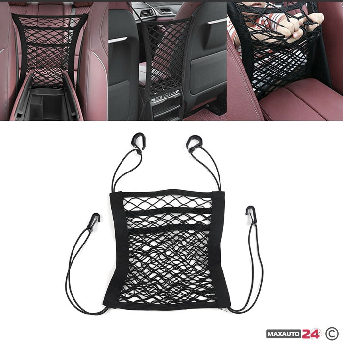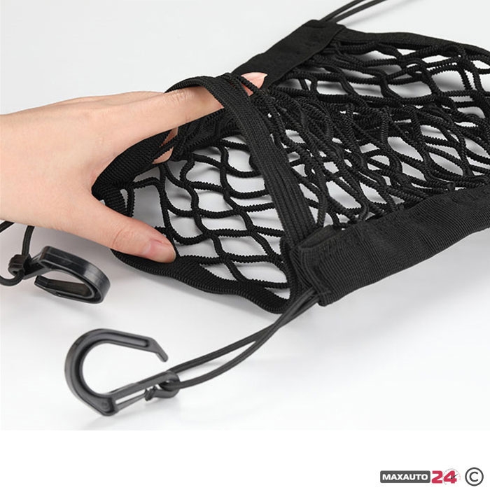 Размерите й са 27х25 см, като разполага с две отделения, които осигуряват допълнително пространство за съхранение на различни предмети. Тази мрежа е универсална и може да се използва във всякакъв вид автомобили.