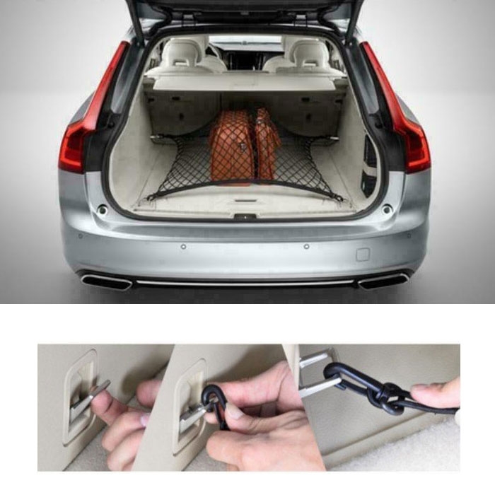 Монтажът на мрежата е бърз и лесен, използвайки куките, които се предоставят. Това ви позволява да я закрепите стабилно в багажника без усилие и безопасност.