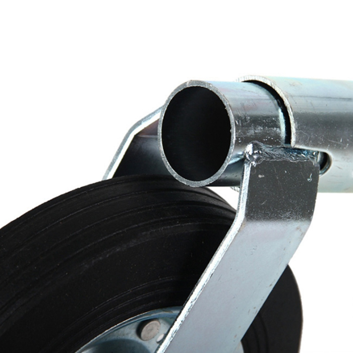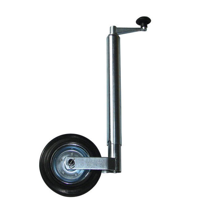 Висококачествено опорно колело, изработено от поцинкована стомана, което осигурява стабилност, дълготрайност и устойчивост на корозия. Подходящо за ремаркета, каравани, платформи и други прикачни съоръжения.