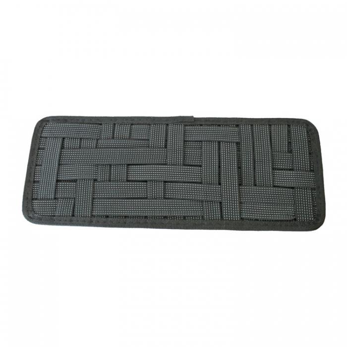 Представяме ви многофункционален органайзер за сенник за кола, който е създаден за компактно съхранение на различни малки предмети по време на пътуване. Този органайзер разполага с набор от плътно преплетени еластични ленти, които осигуряват сигурно закрепване на очила, документи, зарядни устройства и други подобни предмети.