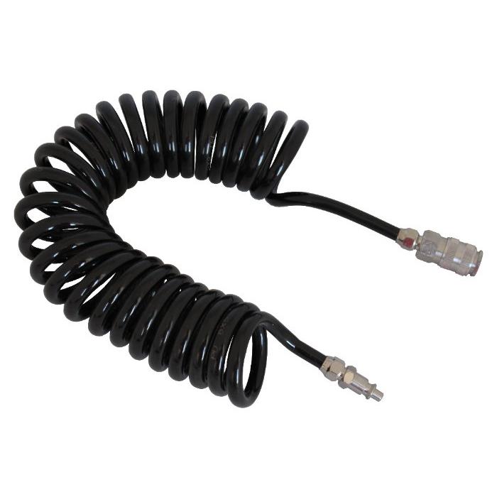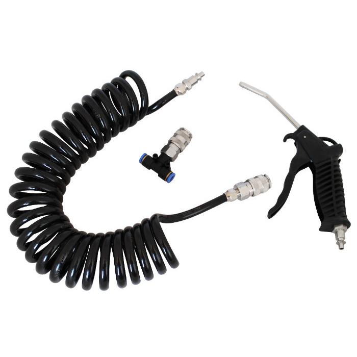Комплектът включва 5 метра спираловиден маркуч с ергономичен дизайн, който е лесен за употреба дори при продължителна работа. Този маркуч е подходящ за почистване на недостъпни зони и за различни други приложения. Работното налягане на маркуча е от 2 до 6 бара, а консумацията на въздух е около 200 литра в минута. Ергономичният дизайн на маркуча осигурява удобство при употреба.