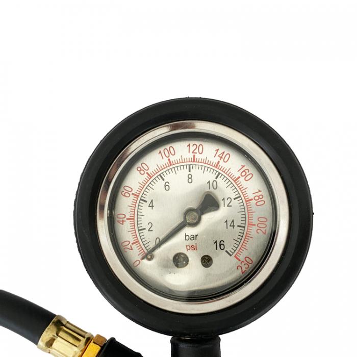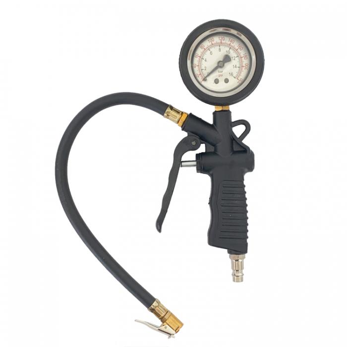 Манометърът е идеален за използване в автомобили, мотори, колела и други подобни превозни средства. Той е механичен, което означава, че работи перфектно във всякакви метеорологични условия. Снабден е с лесно видима скала, която позволява отчитане на налягането в диапазон от 0 до 16 Bar. Освен това разполага със стандартна бърза връзка за удобно свързване.