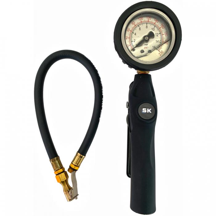 Манометърът е идеален за използване в автомобили, мотори, колела и други превозни средства. Той е механичен и функционира перфектно във всякакви метеорологични условия. Скалата е лесно видима и позволява отчитане на налягането в диапазон от 0 до 16 Bar. Разполага със стандартна бърза връзка за удобно свързване.