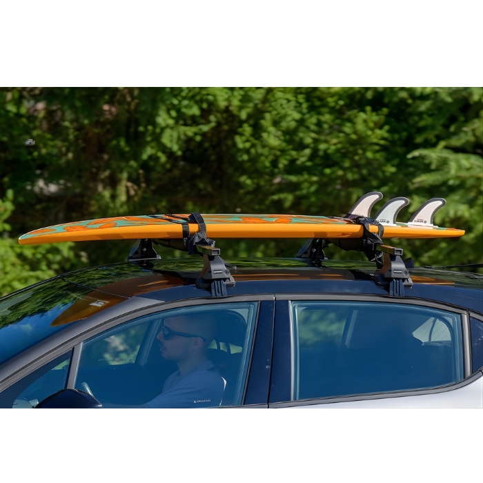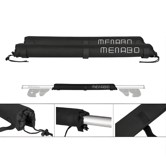 Практично решение за безопасно транспортиране на уиндсърф, SUP или друго водно оборудване върху автомобил. Подложките осигуряват защита както за багажа, така и за покривните греди.