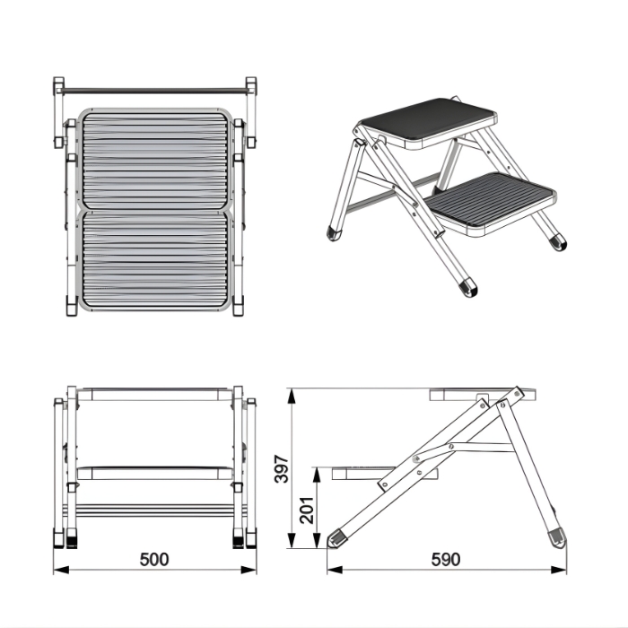 Модел: 1853001 / 8431 – Сгъваема метална стълба с две стъпала