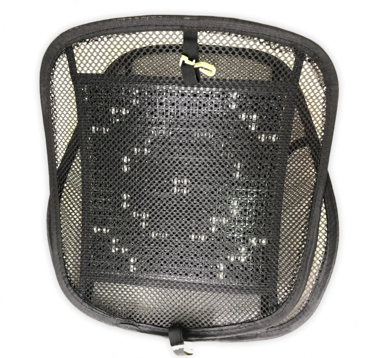 Това е ергономична седалка за автомобил, която покрива цялата седалка и се закрепва лесно чрез ластик със закопчалка. С мрежестата си структура тя позволява свободната циркулация на въздуха, предотвратявайки запарването, изпотяването и хлъзгането. С вградените си кленови топчета, които са против задържане на бактерии, седалката осигурява по-голям комфорт и хигиена. Тя облекчава натиска върху тялото по време на шофиране, като създава спокойно положение на тялото.