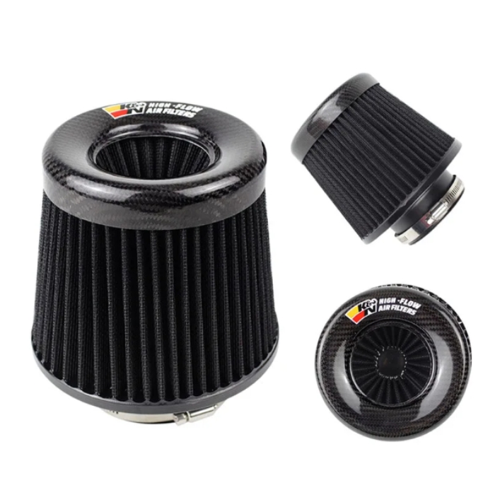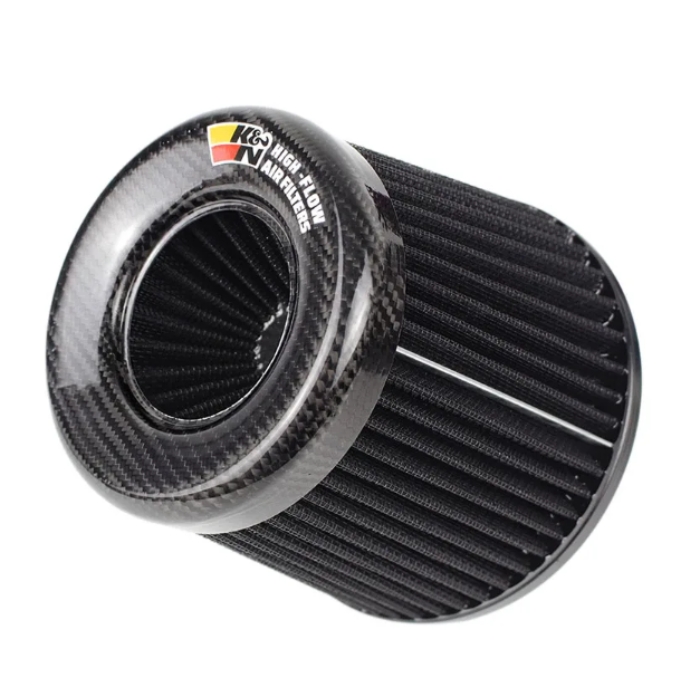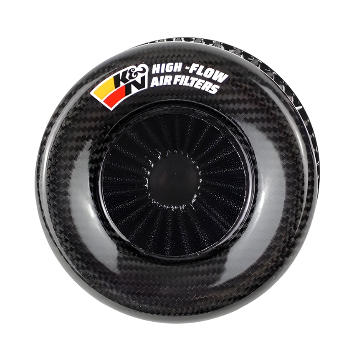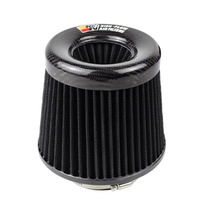Филтърът се отличава с модерен карбонов дизайн, който придава стилна и спортна визия на двигателния отсек. Конусовидната форма увеличава площта на филтрация, а металната стягаща скоба осигурява сигурен и лесен монтаж към въздуховода.