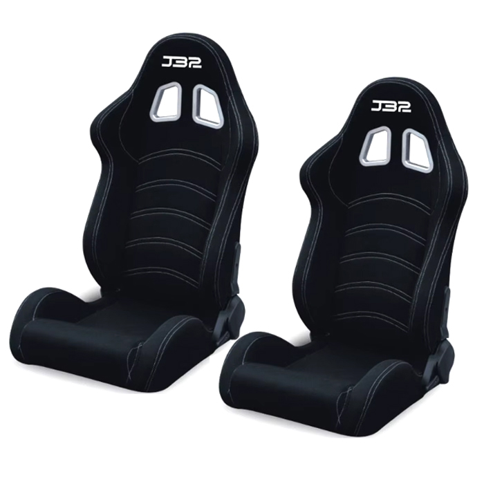 Изработени са от текстилен материал в черен цвят с бял декоративен конец. Комплектът включва лява и дясна седалка, както и универсални монтажни шини.