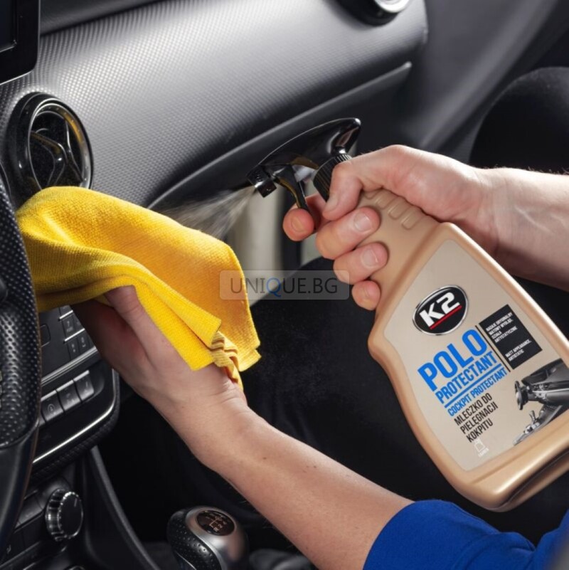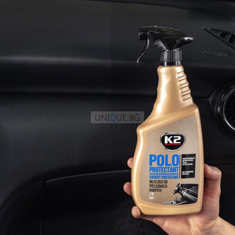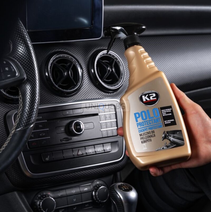 Спрей-препарат POLO PROTECTANT е високоефективен продукт, създаден за почистване, възстановяване на блясъка и защита на таблото и пластмасовите повърхности в автомобила. Той не само възвръща оригиналния цвят, но и предотвратява напукване и износване. Спреят предпазва от натрупване на прах и вредното влияние на UV лъчите, осигурявайки дълготрайна защита и освежаване на интериора. Продуктът е без съдържание на силикон, което го прави безопасен за използване върху всички пластмасови детайли.
