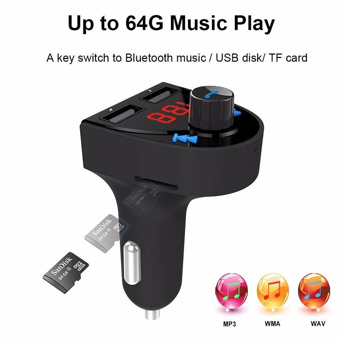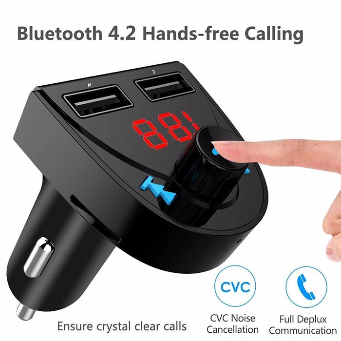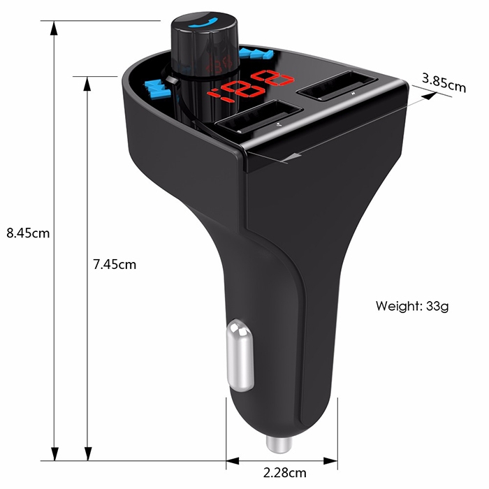 Този трансмитер предоставя многофункционалност, като ви позволява да осъществявате безжични Bluetooth връзки, да предавате аудио чрез FM, да зареждате устройства и да управлявате разговори и музика, всичко с един удобен и стилен уред.