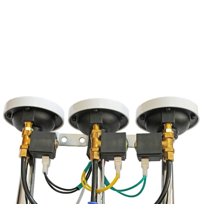 - Комплект с реле и монтажни елементи: В комплекта си тромбата включва реле 24V, монтажна планка и бърза връзка за захранване на тромбите с въздух, което улеснява монтажа и инсталацията.