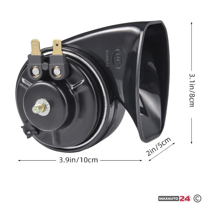 - Честоти: 510Hz (високи) / 410Hz (ниски): Тромбата генерира две честоти – 510Hz за високи тона и 410Hz за ниски тона, което предоставя разнообразен и силен звук.