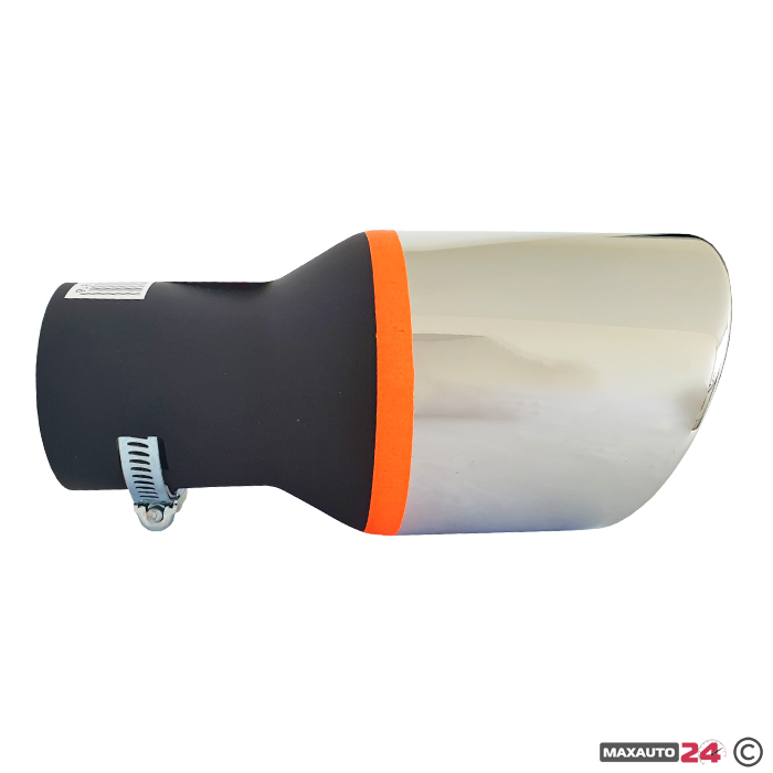 Накрайникът за автомобил е изработен от никелиран метал и има овална и скосена визия. За монтажа се използва скоба. След като бъде монтиран, накрайникът ще придаде спортен вид на автомобила. Размерите му са както следва: