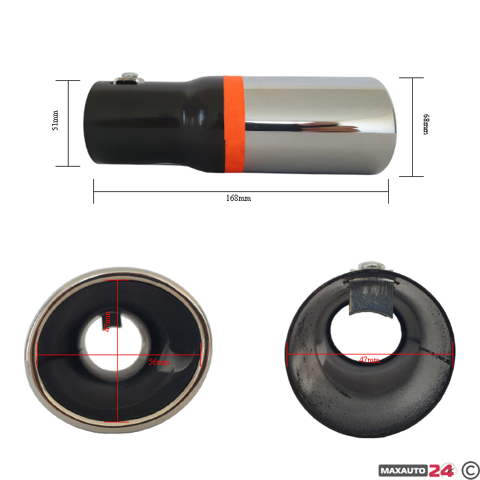Накрайникът за автомобил е изработен от никелиран метал и има овална визия. Монтира се чрез болт. След успешния монтаж на накрайника, автомобилът ще придобие спортен вид.