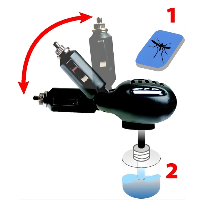Устройството се включва директно в запалката на автомобила, без нужда от монтаж, и започва да действа бързо чрез нагряване на таблетка или течен пълнител против насекоми.