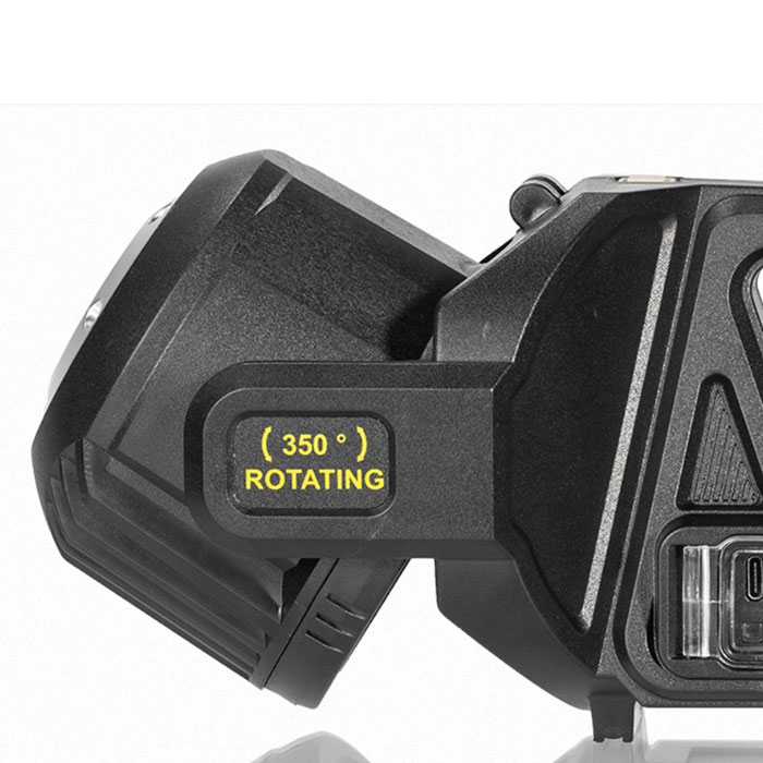 - Въртяща се глава на 350 градуса и удобна дръжка за носене.