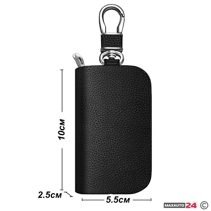 Този ключодържател е в калъв тип и е подходящ за ключове. Изработен е от еко кожа и е в черен цвят. Размерите му са дължина 9.5 см и ширина 5.5 см.