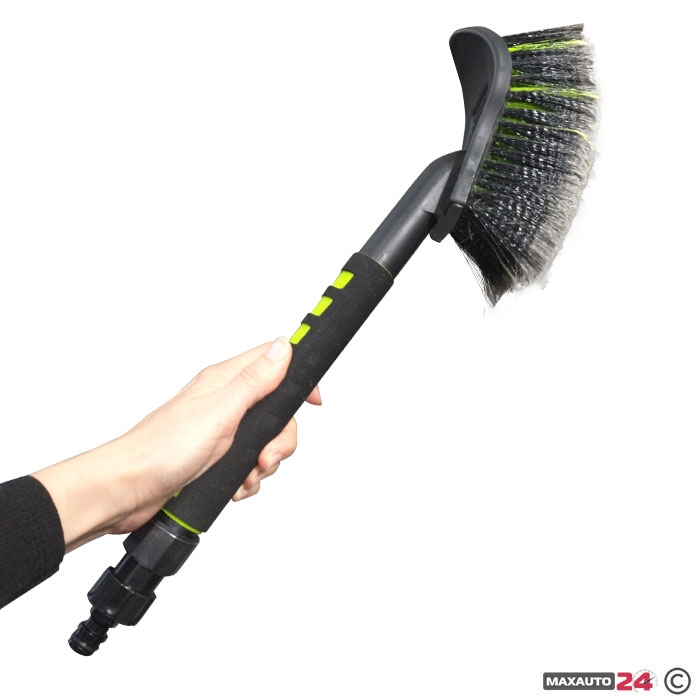 Авто четката за миене на каросерия е изработена от меки влакна, които не увреждат повърхността на лака и боята на автомобила. Дръжката разполага с бърза връзка за свързване на маркуча за вода и вентил за дебит, което прави употребата много удобна. Четката има удобна мека дръжка за по-лесно управление. Дължината на четката е 44 см, а цветовете са черен и зелен. Изработена е от пластмаса.