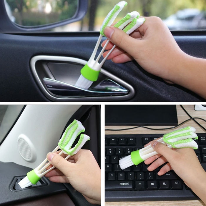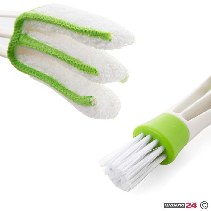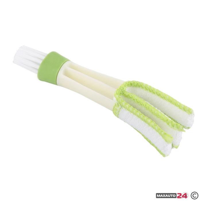 Четката е с две различни страни – едната с меки найлонови влакна, а другата с микрофибърни влакна, което я прави много универсална за различни задачи по почистване. Можете да я използвате както за деликатни повърхности, така и за по-труднодостъпни места, като щори, клавиатури и решетки на прано на автомобили.