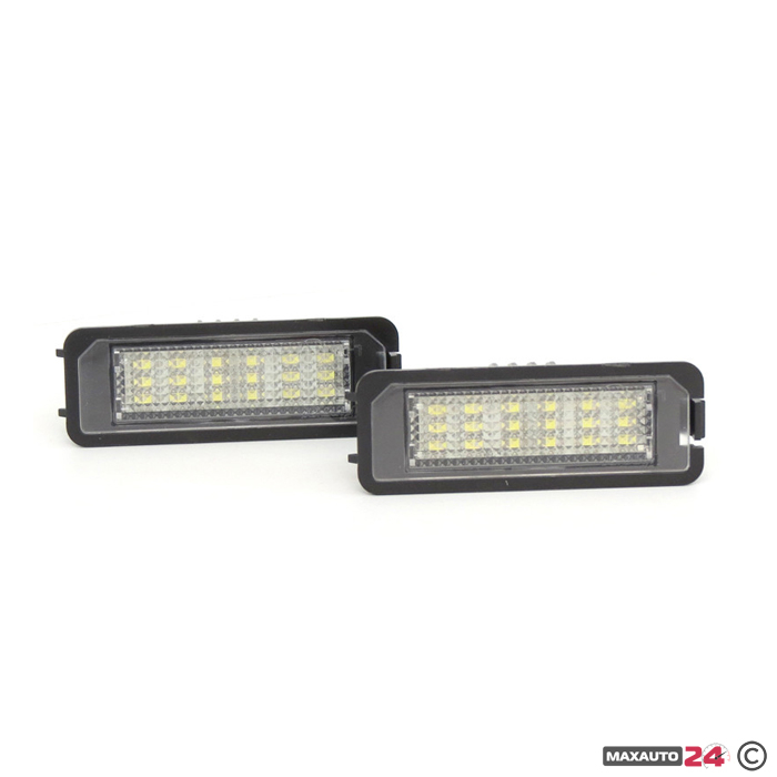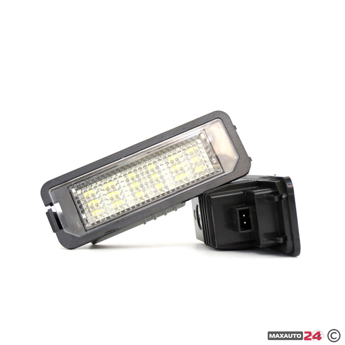 Висококачествени LED плафони за регистрационен номер, предназначени за автомобили Volkswagen. Осигуряват ярка бяла светлина и модерен външен вид, благодарение на 18 CANBUS диода, които предотвратяват грешки в бордовата система.