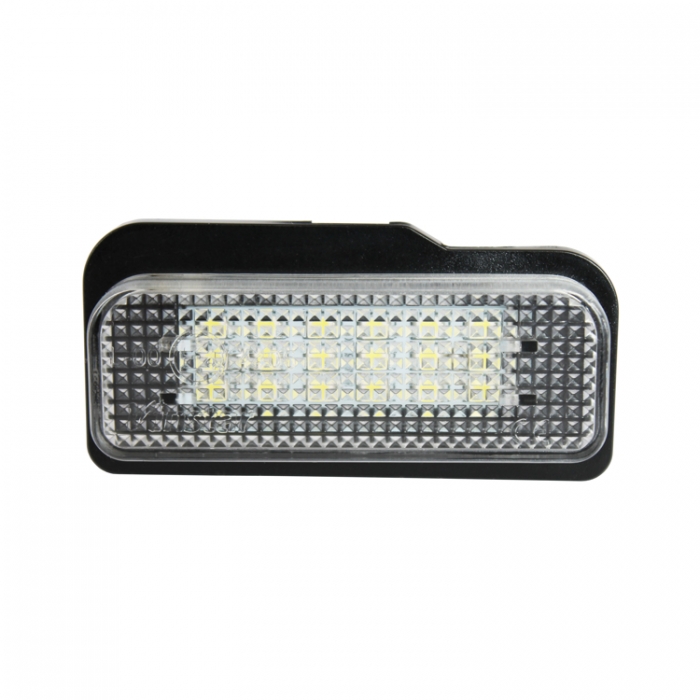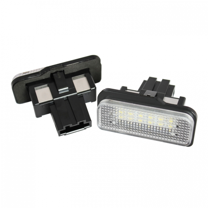 Висококачествени LED плафони за регистрационен номер, специално проектирани за автомобили Mercedes-Benz. Осигуряват ярка бяла светлина и придават модерен вид на автомобила. Благодарение на 18 CANBUS диода, не се появяват грешки в бордовия компютър.