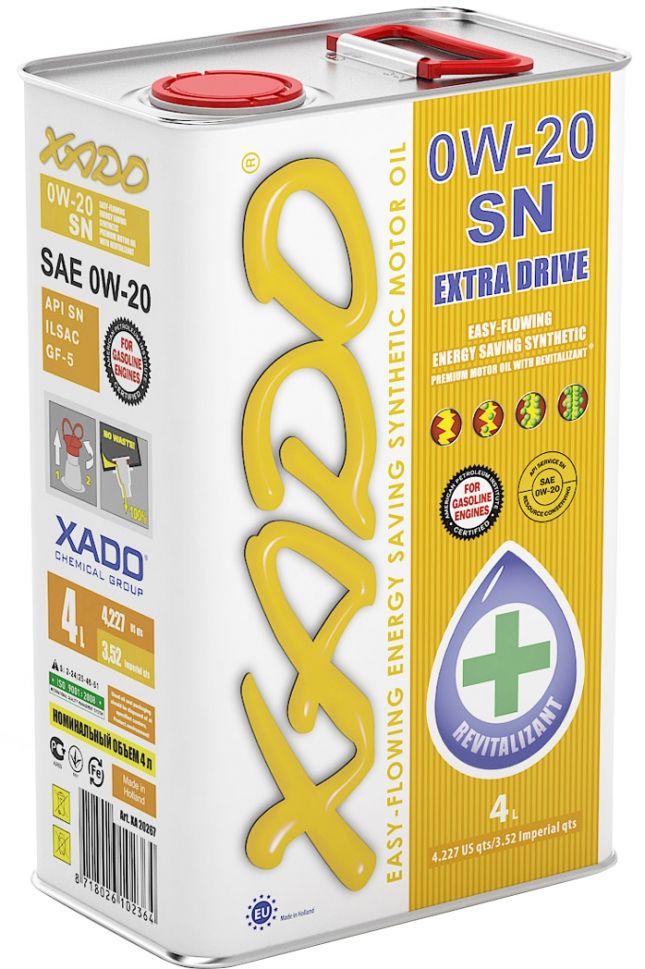 XADO Atomic Oil 0W-20 SN е моторно масло за бензинови двигатели на леки автомобили, съдържащо атомарен ревитализант®, който подпомага възстановяването и защитата на триещите се повърхности. Благодарение на ниския си вискозитет маслото бързо достига до всички точки на смазване и осигурява лесен и надежден студен старт.